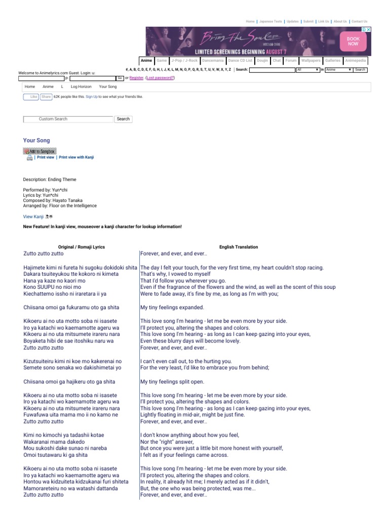 Anime Lyrics Dot Com Your Song Log Horizon Anime
